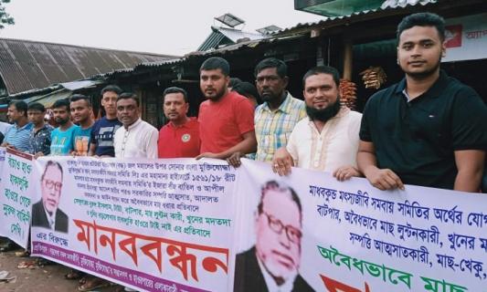হাকালুকিতে অবৈধভাবে মাছ শিকারের প্রতিবাদে মানববন্ধন