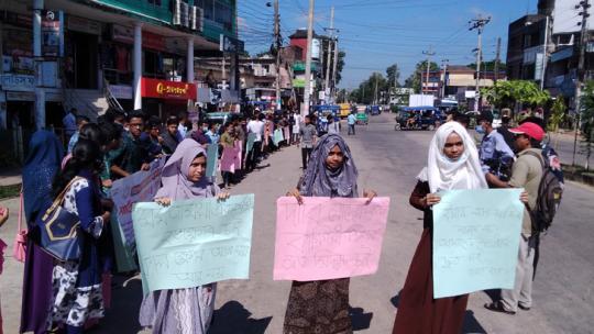 মৌলভীবাজারে ৮ দফা দাবিতে পলিটেকনিক শিক্ষার্থীদের মানববন্ধন