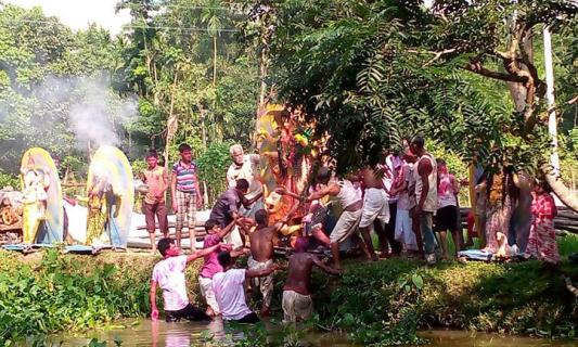 মৌলভীবাজারে শোভাযাত্রা ছাড়াই হলো প্রতিমা বিসর্জন