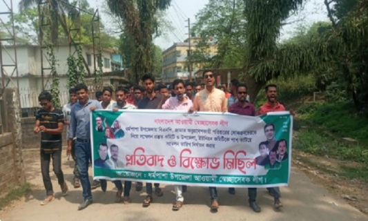 ধর্মপাশায় স্বেচ্ছাসেবক লীগের বিক্ষোভ মিছিল