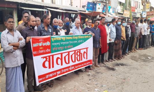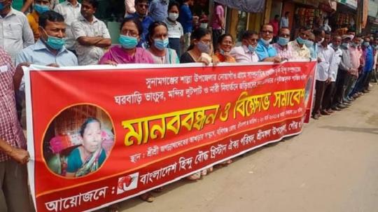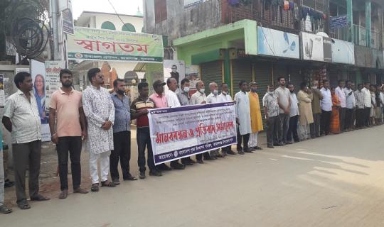 শাল্লায় হামলার প্রতিবাদে দক্ষিণ সুনামগঞ্জে মানববন্ধন