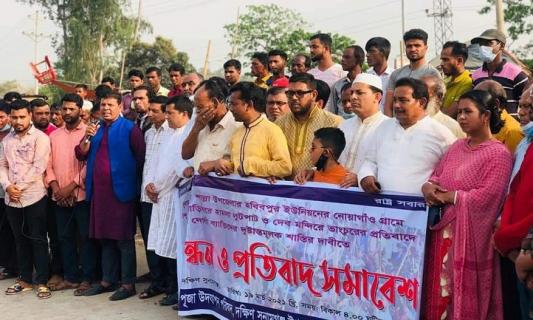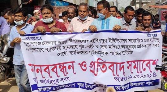 শাল্লায় তাণ্ডবের ঘটনায় তাহিরপুরে প্রতিবাদ