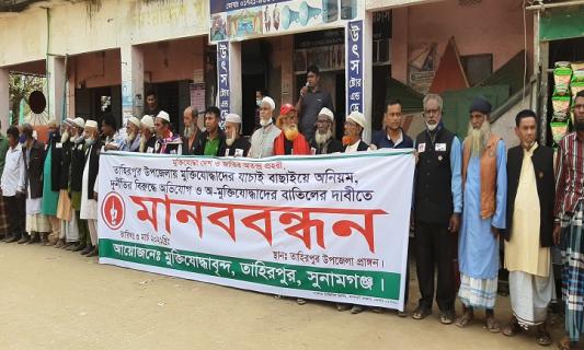 তাহিরপুরে মুক্তিযোদ্ধা বাছাইয়ে অনিয়মের প্রতিবাদ