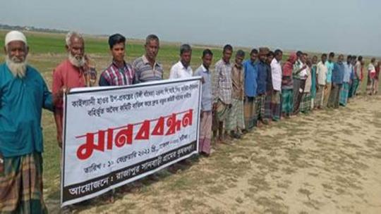ধর্মপাশায় পিআইসি বাতিল করাসহ নানা দাবিতে মানববন্ধন
