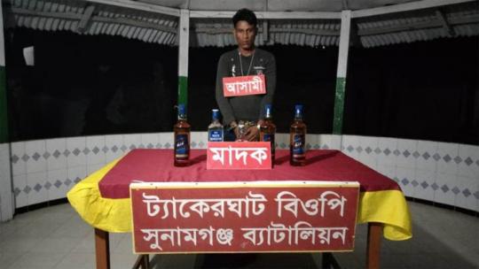 তাহিরপুর সীমান্তে ভারতীয় মদসহ যুবক আটক