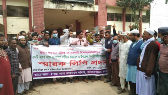 দোয়ারাবাজারে হাওর ভাতার দাবিতে শিক্ষকদের সমাবেশ ও স্মারকলিপি প্রদান