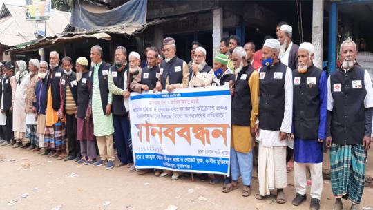 তাহিরপুরে মিথ্যা অপপ্রচারের প্রতিবাদে মানববন্ধন