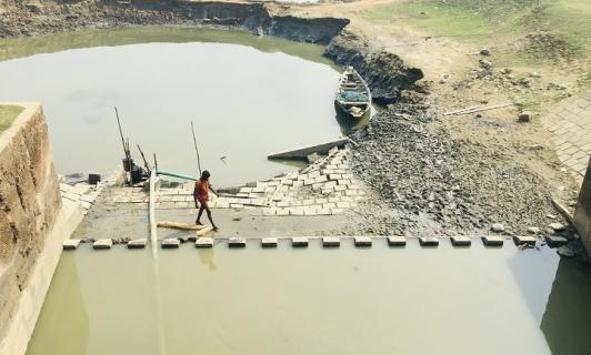 পানি শুকিয়ে মাছ শিকার, হুমকির মুখে স্লুইচগেট