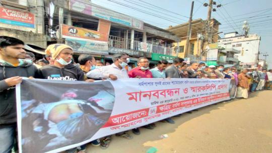 সুনামগঞ্জে মৎস্যজীবীকে হত্যার প্রতিবাদে বর্মণ সম্প্রদায়ের মানববন্ধন