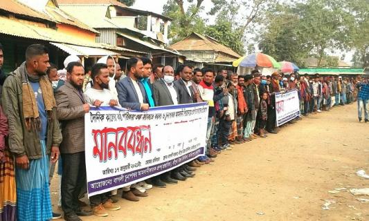 তাহিরপুরে চুনাপাথর আমদানিকারক গ্রুপের মানববন্ধন