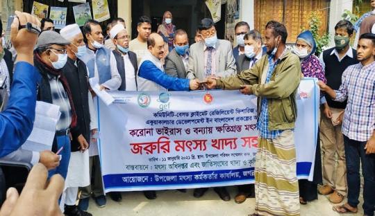 জগন্নাথপুরে করোনা ও বন্যায় ক্ষতিগ্রস্ত মাছ চাষিদের সহায়তা