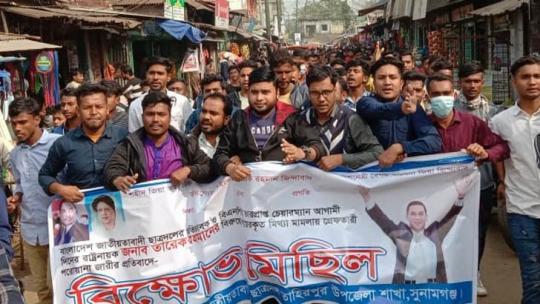 তাহিরপুরে ছাত্রদলের বিক্ষোভ