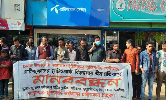 গ্রামীণফোনের নেটওয়ার্ক বিড়ম্বনায় ছাতকে মানববন্ধন