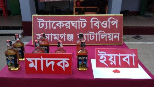 তাহিরপুর সীমান্তে ভারতীয় মদ, ইয়াবা আটক