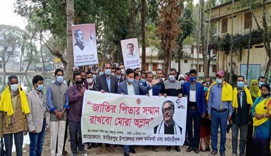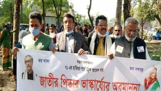 বঙ্গবন্ধুর ভাস্কর্য ভাঙচুরের প্রতিবাদে তাহিরপুরে বিক্ষোভ