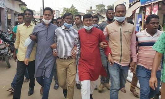 বঙ্গবন্ধুর ভাস্কর্য ভাংচুরের প্রতিবাদে তাহিরপুরে বিক্ষোভ