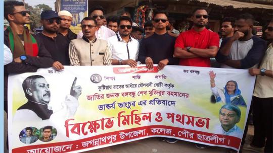 জগন্নাথপুরে ছাত্রলীগের বিক্ষোভ মিছিল