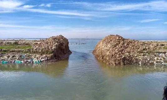 সুনামগঞ্জে বাঁধ কেটে করা হচ্ছে হাওরের পানি নিষ্কাশন