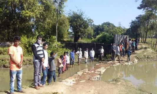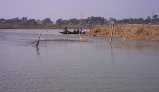 ধর্মপাশায় ফসলরক্ষা বাঁধ কেটে চলছে মাছ শিকার