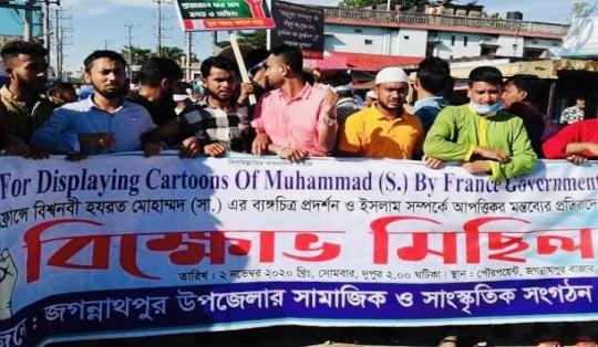 ফ্রান্সের বিপক্ষে জগন্নাথপুরে ২৭টি সংগঠনের বিক্ষোভ