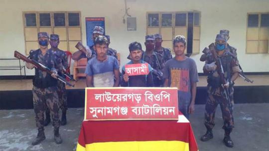 তাহিরপুর সীমান্তে অবৈধ অনুপ্রবেশের দায়ে তিন বাংলাদেশি আটক