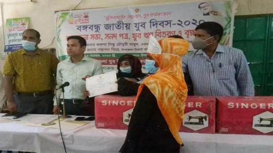 তাহিরপুরে যুব দিবসে সেলাই মেশিন বিতরণ