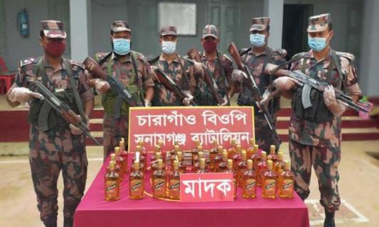 সুনামগঞ্জ সীমান্তে ভারতীয় মদ, বিড়ি ও গরু আটক