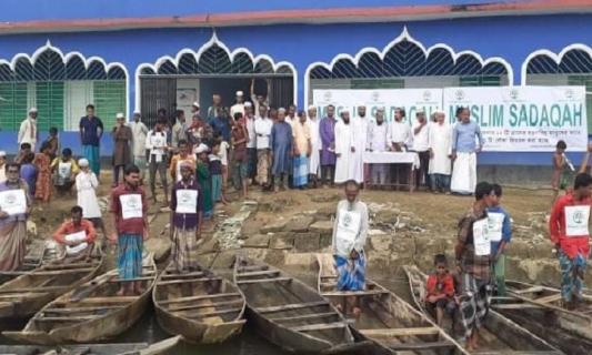 তাহিরপুরে মাছ ধরার নৌকা পেল ৭০টি পরিবার
