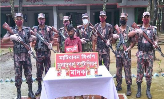 সুনামগঞ্জে মদ, রিয়াল ও রুপিসহ যুবক আটক