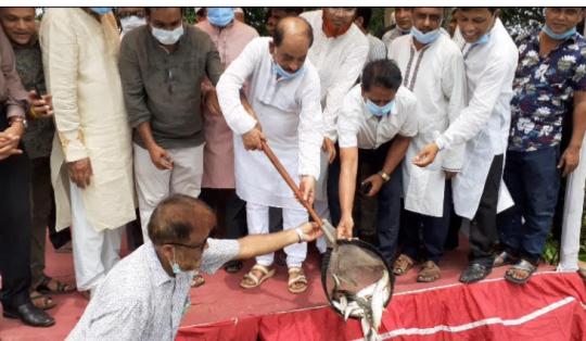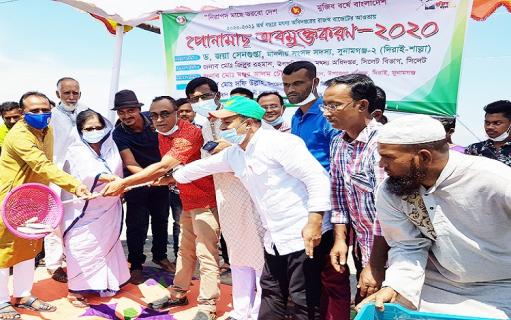 জগন্নাথপুরের হাওরে পোনামাছ অবমুক্ত