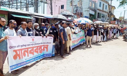 মুক্তিযোদ্ধা কমপ্লেক্স নির্মাণের দাবিতে দিরাইয়ে মানববন্ধন