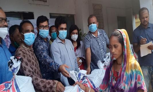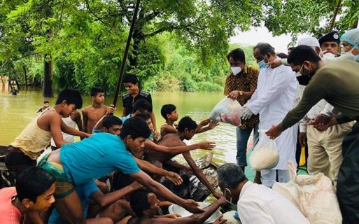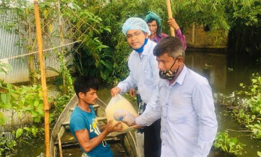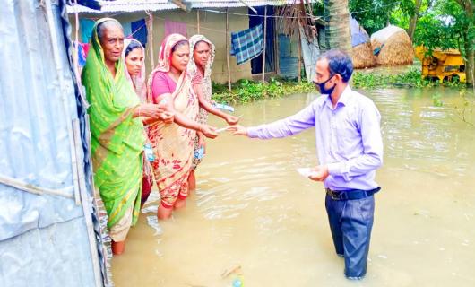 জগন্নাথপুরে বন্যাকবলিত গ্রামে ত্রাণ বিতরণ