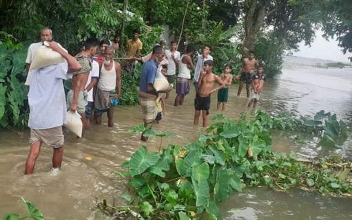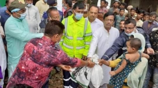তাহিরপুরে দুর্গত এলাকায় সাংসদ রতনের ত্রাণ বিতরণ
