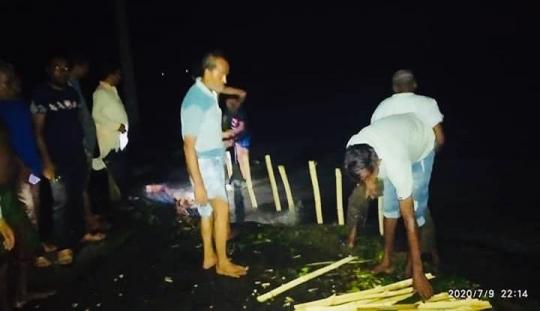 জগন্নাথপুরে সড়কের ভাঙন ঠেকাতে এলাকাবাসীর লড়াই