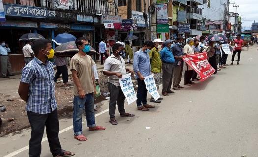 পাটকল বন্ধের সিদ্ধান্তের প্রতিবাদে সুনামগঞ্জে মানববন্ধন