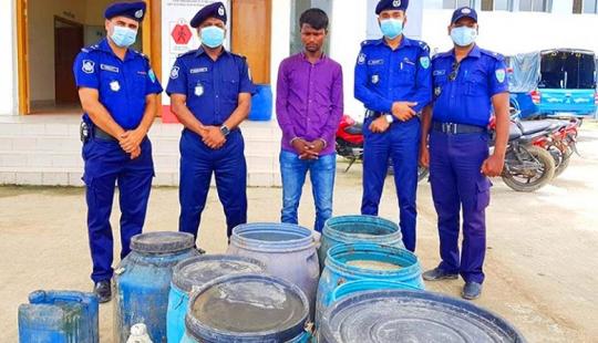দ. সুনামগঞ্জে বিপুল পরিমাণ চোলাই মদ উদ্ধার, গ্রেপ্তার ১