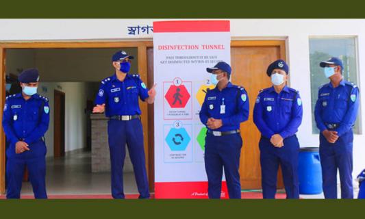 দক্ষিণ সুনামগঞ্জ থানায় জীবানু নাশক টানেল উদ্বোধন