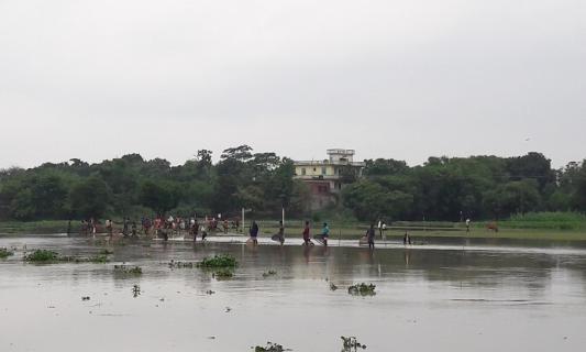 হাওরে উজাইর মাছ ধরতে ব্যস্ত সৌখিন শিকারীরা