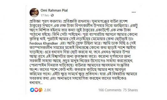 রিস্টব্যান্ড বিক্রি করে রণেশ ঠাকুরের পাশে অমি রহমান পিয়াল