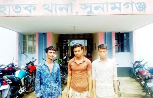 ছাতকে জনতার হাতে আটক তিন নৌ চাঁদাবাজ