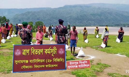বিদ্যানন্দ ফাউন্ডেশনের ত্রাণ সামগ্রী পৌছে দিলো বিজিবি