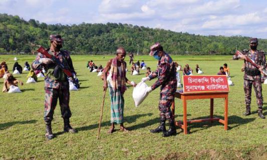 সুনামগঞ্জে খাদ্যসামগ্রী নিয়ে হতদরিদ্রের পাশে বিজিবি