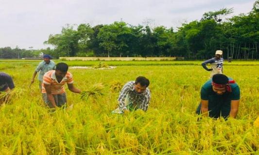 জগন্নাথপুরে ধান কাটছেন ১০ হাজার স্বেচ্ছাসেবী