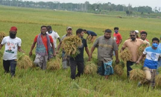 সুনামগঞ্জে ধান কেটে দিলো স্বেচ্ছাসেবক লীগ