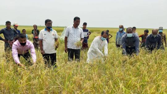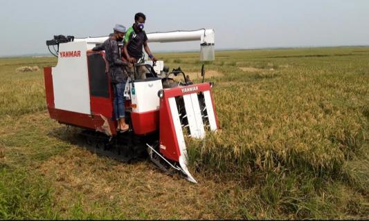 দেখার হাওরে আধুনিক মেশিনে ধান কাটা শুরু