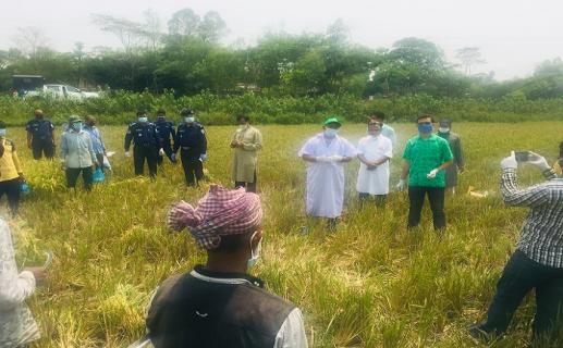 করোনা সতর্কতা : নলুয়া হাওরে কৃষক-শ্রমিকদের মাঝে প্রচার