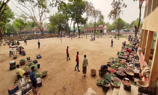 তাহিরপুরের কাঁচাবাজার খোলা জায়গায় স্থানান্তর