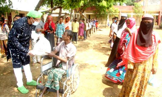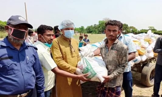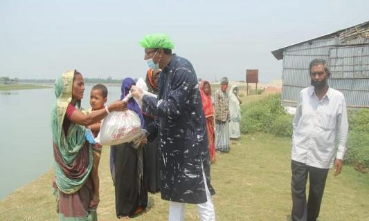 বাড়ি বাড়ি গিয়ে খাদ্যসামগ্রী দিচ্ছেন মিজান চৌধুরী
