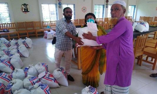 তাহিরপুরে ১৬৫ পরিবারে চাল, ডাল ও মাস্ক বিতরণ