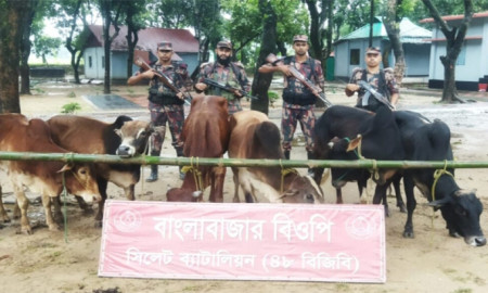 সুনামগঞ্জের মধ্যনগর সীমান্তে অভিযান ১২টি ভারতীয় গরু আটক